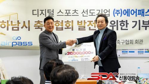 [½Åµ¿¾Æ¹æ¼Û Çϳ²½Ã=À̽ŵ¿±âÀÚ] µðÁöÅÐ ½ºÆ÷Ã÷ ¼Ö·ç¼Ç ¼±µµ±â¾÷ ¢ß¿¡¾îÆÐ½º°¡ Çϳ²½Ã üÀ° ¹ßÀüÀÇ ±Ù°£À» ¸¶·ÃÇϰí Áö¿ª»çȸ¿ÍÀÇ ½ÇÁúÀûÀÎ »ó»ýÀ» ½ÇõÇϱâ À§ÇØ Çϳ²½Ã Ã౸Çùȸ¿¡ ÈÄ¿ø±â±ÝÀ» Àü´ÞÇß´Ù°í ¹àÇû´Ù.