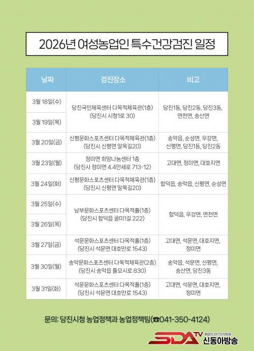 °ËÁø ´ë»óÀº 2026³â ±âÁØ ´çÁø½Ã¿¡ °ÅÁÖÇÏ´Â ³ó¾÷°æ¿µÃ¼¿¡ µî·ÏµÈ ¸¸ 51~80¼¼(1946.1.1.~1975.12.31.)ÀÇ ¿©¼º³ó¾÷ÀÎ Áß Â¦¼ö³âµµ Ãâ»ýÀÚ¸ç, Ȧ¼ö³âµµ Ãâ»ýÀÚ´Â ³»³â¿¡ °ËÁø¹ÞÀ» ¼ö ÀÖ´Ù.