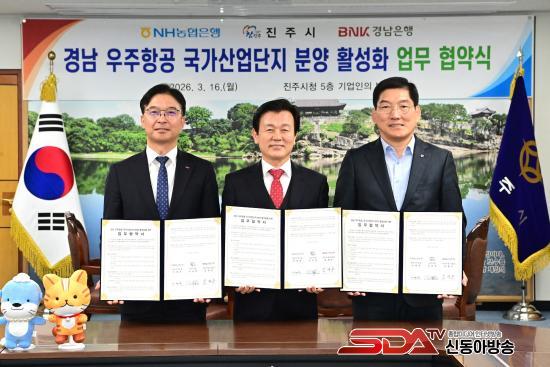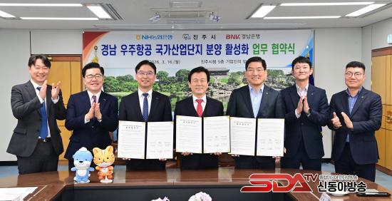 [½Åµ¿¾Æ¹æ¼Û °æ³²ÁøÁÖ=±è¸í¼ö±âÀÚ] ÁøÁֽô 16ÀÏ ½Ãû ±â¾÷ÀÎÀÇ ¹æ¿¡¼­ NH³óÇùÀºÇà, BNK°æ³²ÀºÇà°ú ¡®°æ³² ¿ìÁÖÇ×°ø ±¹°¡»ê¾÷´ÜÁö ºÐ¾ç Ȱ¼ºÈ­¡¯¸¦ À§ÇÑ ¾÷¹«Çù¾àÀ» ü°áÇß´Ù°í ¹àÇû´Ù.
