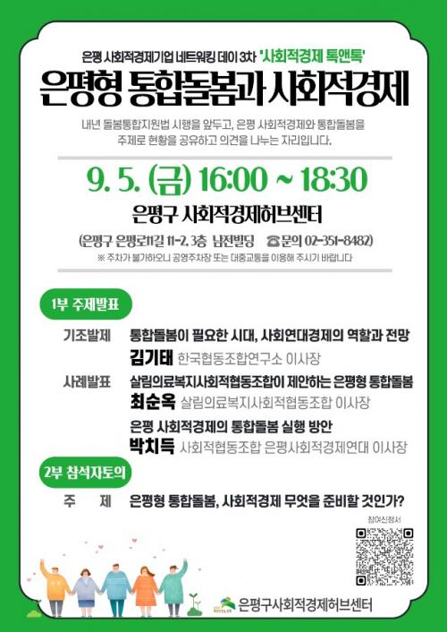 [½Åµ¿¾Æ¹æ¼Û ÀºÆò±¸=À̽ŵ¿±âÀÚ] ¼­¿ï ÀºÆò±¸´Â ¿À´Â 5ÀÏ ¡®ÀºÆòÇü ÅëÇÕµ¹º½°ú »çȸÀû°æÁ¦¡¯¸¦ ÁÖÁ¦·Î »çȸÀû°æÁ¦Çãºê¼¾ÅÍ¿¡¼­ ¡®»çȸÀû°æÁ¦±â¾÷ ³×Æ®¿öÅ· µ¥ÀÌ¡¯¸¦ °³ÃÖÇÑ´Ù°í ¹àÇû´Ù. ¿ÃÇØ 3¿ù°ú 6¿ù¿¡ ÀÌ¾î ¼¼ ¹øÂ°·Î ¿­¸®´Â ¡®»çȸÀû°æÁ¦±â¾÷ ³×Æ®¿öÅ· µ¥ÀÌ¡¯´Â ¡¦