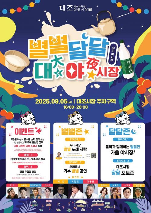 [½Åµ¿¾Æ¹æ¼Û ÀºÆò±¸=À̽ŵ¿±âÀÚ] ¼­¿ï ÀºÆò±¸´Â ¿À´Â 5ÀÏ ¿ÀÈÄ 4½ÃºÎÅÍ 8½Ã±îÁö ´ëÁ¶½ÃÀå¿¡¼­ ¡®º°º°´Þ´Þ ´ë(ÓÞ)¾ß(å¨)½ÃÀ塯À» ¿¬´Ù°í ¹àÇû´Ù. ¼­¿ï½Ã ¡®2025³â ÀüÅë½ÃÀå ¾ß°£ ¹× À½½Ä¹®È­ Ȱ¼ºÈ­ Áö¿ø»ç¾÷¡¯À¸·Î ¼±Á¤µÈ À̹ø Çà»ç´Â ÀüÅë½ÃÀå Ȱ¼ºÈ­¿Í ÁֹΠȭÇÕÀ»¡¦