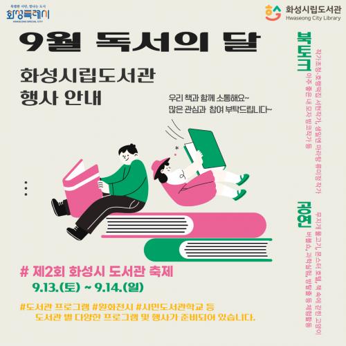 [½Åµ¿¾Æ¹æ¼Û=ÀÌÀçö±âÀÚ] È­¼ºÆ¯·Ê½Ã(½ÃÀå Á¤¸í±Ù)°¡ 9¿ù µ¶¼­ÀÇ ´ÞÀ» ¸Â¾Æ °ü³» È­¼º½Ã¸³µµ¼­°ü¿¡¼­ ´Ùä·Î¿î µ¶¼­ ¹®È­ Çà»ç¸¦ ¿î¿µÇÑ´Ù°í 3ÀÏ ¹àÇû´Ù. Çà»ç¿¡´Â °ü³» 30°³ ½Ã¸³µµ¼­°üÀÌ Âü¿©ÇØ °ø¿¬, Àü½Ã, üÇè µî ½Ã¹Î Âü¿©Çü ÇÁ·Î±×·¥ 292°³¸¦ ¿î¿µÇϸç, Áö½Ä¡¦