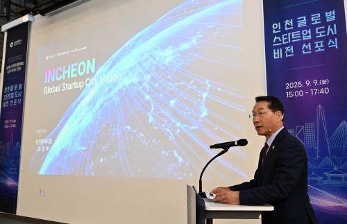 [½Åµ¿¾Æ¹æ¼Û ÀÎõ= À±¹Î½Ä ±âÀÚ]ÀÎõ±¤¿ª½Ã(½ÃÀå À¯Á¤º¹)´Â 9¿ù 9ÀÏ ÀÎõ½ºÅ¸Æ®¾÷ÆÄÅ© Ä¿³ØÆ®È¦¿¡¼­¡®ÀÎõ½Ã ±Û·Î¹ú ½ºÅ¸Æ®¾÷ µµ½Ã ºñÀü ¼±Æ÷½Ä¡¯À» ¿­°í, ¡°±Û·Î¹ú ½ºÅ¸Æ®¾÷ Ç÷§Æû, Çõ½ÅÀÌ ¸ðÀÌ´Â ÀÎõ¡±À̶ó´Â »õ·Î¿î ºñÀüÀ» ¹ßÇ¥Çß´Ù. ¼±Æ÷½Ä¿¡´Â À¯Á¤º¹ ÀÎõ±¤¡¦
