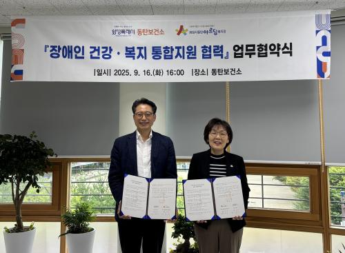 [½Åµ¿¾Æ¹æ¼Û=ÀÌÀçö±âÀÚ] È­¼ºÆ¯·Ê½Ã(½ÃÀå Á¤¸í±Ù)°¡ Áö³­ 16ÀÏ È­¼º½Ãµ¿Åºº¸°Ç¼Ò¿¡¼­ È­¼º½Ãµ¿Åº¾Æ¸£µõº¹Áö°ü°ú ¡®Áö¿ª Àå¾ÖÀÎÀÇ °Ç°­ÇÑ »î°ú ÀçȰ ¼­ºñ½º °­È­¸¦ À§ÇÑ ÀçȰ»ç¾÷ ¿¬°è ¾÷¹«Çù¾à(MOU)¡¯¸¦ ü°áÇß´Ù. À̳¯ Çù¾à½ÄÀº ¹®ÀÚ È­¼º½Ãµ¿Åºº¸°Ç¼ÒÀå, ÇÑ±Ù½Ä È­¡¦
