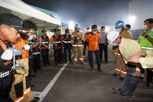 [½Åµ¿¾Æ¹æ¼Û Àü³²±¤¾ç=¹Ú±¤¿Á±âÀÚ] ±¤¾ç½Ã´Â 9¿ù 13ÀÏ ¿ÀÀü 8½Ã 38ºÐ, ±¤¾çÇ× µ¿Ãø¹èÈÄ´ÜÁö ³» ¹°·ùâ°í¿¡¼­ ¹ß»ýÇÑ È­ÀçÀÇ Á¶±â ÁøÈ­¸¦ À§ÇØ Àç³­¾ÈÀü´ëÃ¥º»ºÎ¿Í ÇöÀå ÅëÇÕÁö¿øº»ºÎ¸¦ ¼³Ä¡Çϰí Àü ºÎ¼­°¡ ÃÑ·Â ´ëÀÀÇϰí ÀÖ´Ù°í ¹àÇû´Ù. Á¤ÀÎÈ­ ±¤¾ç½ÃÀåÀº 9¿ù 17ÀÏ ¡¦