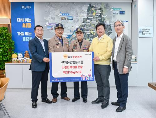 [½Åµ¿¾Æ¹æ¼Û ½ÃÈï½Ã=À̽ŵ¿±âÀÚ] ½ÃÈï½Ã´Â Áö³­ 9¿ù 24ÀÏ ±ºÀÚ³ó¾÷Çùµ¿Á¶ÇÕÀÌ ½ÃÈï½Ã1%º¹ÁöÀç´Ü(ÀÌÇÏ, º¹ÁöÀç´Ü)À» ÅëÇØ ¹é¹Ì 10kg 50Æ÷¸¦ ±âŹÇß´Ù°í ¹àÇû´Ù. Áö¿ª°ú ÇÔ²² ¼ºÀåÇØ ¿Â ±ºÀÚ³ó¾÷Çùµ¿Á¶ÇÕÀº 2017³âºÎÅÍ ÇöÀç±îÁö 6,074¸¸ ¿ø »ó´çÀÇ ÈÄ¿ø±ÝǰÀ» ²ÙÁØÈ÷ ¡¦