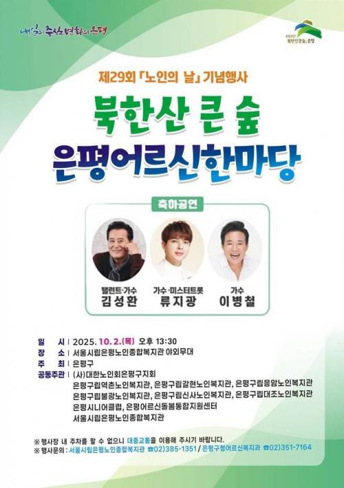 [½Åµ¿¾Æ¹æ¼Û ÀºÆò±¸=À̽ŵ¿±âÀÚ] ¼­¿ï ÀºÆò±¸´Â ³»´Þ 2ÀÏ ½Ã¸³ÀºÆò³ëÀÎÁ¾ÇÕº¹Áö°ü¿¡¼­ ¡®Á¦29ȸ ³ëÀÎÀÇ ³¯ ±â³äÇà»ç¡¯¸¦ °³ÃÖÇÑ´Ù°í ¹àÇû´Ù. À̹ø ±â³äÇà»ç´Â ÀºÆò±¸°¡ ÁÖÃÖÇϰí ÀºÆò±¸³ëÀκ¹Áö¿¬ÇÕȸ¿Í (»ç)´ëÇѳëÀÎȸÀºÆò±¸Áöȸ°¡ ÁÖ°üÇϸç, 10¿ù 2ÀÏ ¡®³ëÀÎÀÇ ³¯¡¦