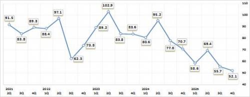 [½Åµ¿¾Æ¹æ¼Û ¿©¼ö=±è±â³² ±âÀÚ] ¿©¼ö»ó°øÈ¸ÀǼÒ(ȸÀå Çѹ®¼±)´Â ¿©¼öÁö¿ª 186°³ Á¦Á¶¾÷ü¸¦ ´ë»óÀ¸·Î ½Ç½ÃÇÑ ¡¸2025³â 4/4ºÐ±â ±â¾÷°æ±âÀü¸ÁÁ¶»ç(BSI)¡¹ °á°ú¸¦ ¹ßÇ¥Çß´Ù. Á¶»ç °á°ú, 2025³â 4/4ºÐ±â ±â¾÷°æ±âÀü¸ÁÁö¼ö(BSI)´Â 52.1·Î ÀüºÐ±â(55.7) ´ëºñ 3.6 Æ÷ÀÎÆ® ¡¦