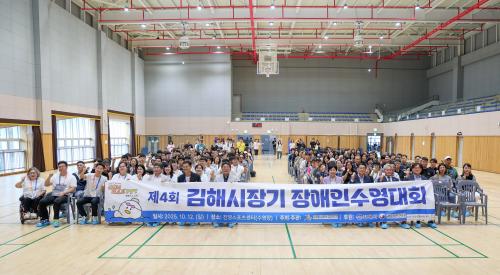 [½Åµ¿¾Æ¹æ¼Û °æ³²±èÇØ=³²±Ã¿µ±â±âÀÚ] ±èÇØ½ÃÀå¾ÖÀÎüÀ°È¸´Â Áö³­ 12ÀÏ Áø¿µ½ºÆ÷Ã÷¼¾ÅÍ¿¡¼­ ¡®Á¦4ȸ ±èÇØ½ÃÀå±â Àå¾ÖÀμö¿µ´ëȸ¡¯¸¦ °³ÃÖÇß´Ù°í 13ÀÏ ¹àÇû´Ù. ±èÇØ½ÃÀå¾ÖÀμö¿µ¿¬¸ÍÀÌ ÁÖÃÖ¡¤ÁÖ°üÇÏ°í ±èÇØ½Ã¿Í ±èÇØ½ÃÀå¾ÖÀÎüÀ°È¸°¡ ÈÄ¿øÇÏ´Â ´ëȸ´Â ±èÇØ½Ã»Ó¸¸ ¾Æ´Ï¶ó¡¦
