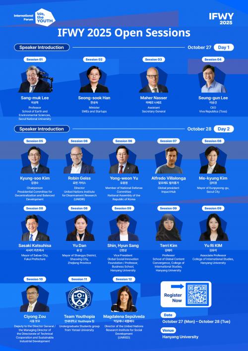 [½Åµ¿¾Æ¹æ¼Û ÀºÆò±¸=À̽ŵ¿±âÀÚ] ¼­¿ï ÀºÆò±¸´Â ±¹Á¦Ã»³âÆ÷·³ ÀÌÇÁÀ§(IFWY, International Forum We, the Youth)ÀÇ ÆÄÀ̳ΠÄÜÆÛ·±½º ÇÁ·Î±×·¥ÀÎ ¿ÀÇ ¼¼¼Ç(Open Sessions)ÀÌ ¿À´Â 27ÀϺÎÅÍ 28ÀϱîÁö ÇѾç´ëÇб³¿¡¼­ ÁøÇàµÈ´Ù°í ¹àÇû´Ù. ±¸´Â À¯¿£»çȸ°³¹ß¿¬±¸¼Ò(UNRI¡¦