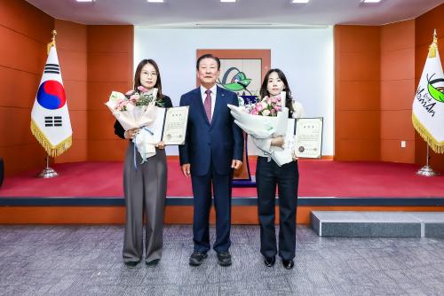 [½Åµ¿¾Æ¹æ¼Û °æ³²ÇÔ¾È=À̽ŵ¿±âÀÚ] ÇԾȱºÀº 11¿ù ¡®Ä£Àý°ø¹«¿ø¡¯À¸·Î ȯ°æ°ú ±è¿¹½½(ÇàÁ¤8±Þ) ÁÖ¹«°ü°ú °Ç°­ÁõÁø°ú ¹Ú¿¹¸²(º¸°Ç8±Þ) ÁÖ¹«°üÀ» ¼±Á¤Çϰí, Áö³­ 3ÀÏ Á¤·ÊÁ¶È¸¿¡¼­ ǥâÀåÀ» ¼ö¿©Çß´Ù°í ¹àÇû´Ù. ȯ°æ°ú ±è¿¹½½ ÁÖ¹«°üÀº »ýȰÆó±â¹° ó¸®¿Í ´Ü¼Ó ¾÷¹«¸¦¡¦