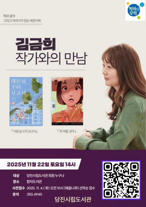[½Åµ¿¾Æ¹æ¼Û=ÀÌÀçö±âÀÚ] ´çÁø½Ã¸³µµ¼­°ü(°üÀå ÃÖ¸í¿ë)Àº ÇÕ´öµµ¼­°ü¿¡¼­ ¿À´Â 22ÀÏ ¿ÀÈÄ 2½Ã, ¼¶¼¼ÇÑ ¹®Ã¼¿Í µû¶æÇÑ ¼­»ç·Î ¸¹Àº µ¶ÀÚÀÇ »ç¶ûÀ» ¹Þ´Â ¼Ò¼³°¡ ±è±ÝÈñ ÀÛ°¡¸¦ ÃÊÃ»ÇØ ºÏÄܼ­Æ®¸¦ °³ÃÖÇÑ´Ù. 18ÀÏ ½Ã¸³µµ¼­°ü¿¡ µû¸£¸é, À̹ø Çà»ç´Â Áö¿ª Áֹε鿡°Ô µ¶¡¦