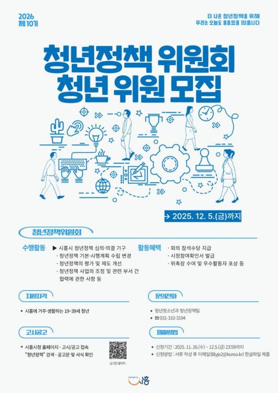 [½Åµ¿¾Æ¹æ¼Û ½ÃÈï½Ã=À̽ŵ¿±âÀÚ] ½ÃÈï½Ã´Â û³âµéÀÇ ´Ù¾çÇÑ ¸ñ¼Ò¸®¸¦ µéÀ» ¼ö ÀÖ´Â Á¦10±â ½ÃÈï½Ã û³âÁ¤Ã¥À§¿øÈ¸ û³âÀ§¿øÀ» ¿À´Â 12¿ù 5ÀϱîÁö °ø°³ ¸ðÁýÇÑ´Ù. ½ÃÈï½Ã û³âÁ¤Ã¥À§¿øÈ¸´Â ¡¸½ÃÈï½Ã û³â ±âº»Á¶·Ê¡¹¿¡ µû¶ó ¼³Ä¡µÈ û³â Âü¿©Çü ±â±¸·Î, û³âÁ¤Ã¥ ±âº»¡¦