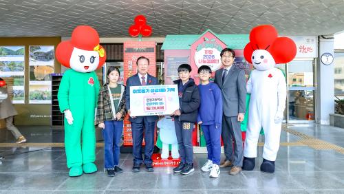 [½Åµ¿¾Æ¹æ¼Û °æ³²ÇÔ¾È=À̽ŵ¿±âÀÚ] ÇԾȱºÀº Áö³­ 2ÀÏ ±ºÃ» 1Ãþ ·Îºñ¿¡¼­ ¿­¸° ¡®Èñ¸Á2026³ª´®Ä·ÆäÀÎ »ç¶ûÀÇ ¿ÂµµÅ¾ Ãâ¹ü½Ä¡¯¿¡¼­ ¹®¾ÏÃʵîÇб³ ÇлýµéÀÌ ²ÉÂ÷ ÆÇ¸Å¿Í ³ª´®ÀåÅÍ ¼öÀÍ±Ý ÃÑ 33¸¸600¿øÀ» ±âºÎÇß´Ù°í ¹àÇû´Ù. ¹®¾ÏÃÊ´Â 11¿ù 14ÀÏ ¡®¹®¾Ï ÇѸ¶À½ ¼º°úº¸°í¡¦