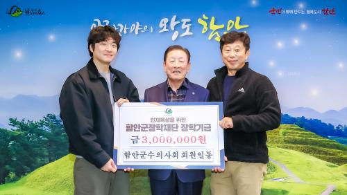 [½Åµ¿¾Æ¹æ¼Û °æ³²ÇÔ¾È=À̽ŵ¿±âÀÚ] ÇԾȱº ¼öÀÇ»çȸ´Â 9ÀÏ ÇԾȱºÀåÇÐÀç´ÜÀ» ¹æ¹®ÇØ Áö¿ª ÀÎÀç À°¼ºÀ» À§ÇÑ ÀåÇбâ±Ý 300¸¸ ¿øÀ» ±âŹÇß´Ù. À̳¯ ±âŹ½Ä¿¡´Â Á¶º¹Á¦ ȸÀå°ú º¯Á¤¼ö ºÎȸÀå, ±èÀç¹Î Ãѹ«°¡ Âü¼®ÇØ Áö¿ª ±³À° ¹ßÀü°ú ÀÎÀç ¾ç¼º¿¡ ÈûÀ» º¸Å°íÀÚ ÇÏ´Â ¶æ¡¦