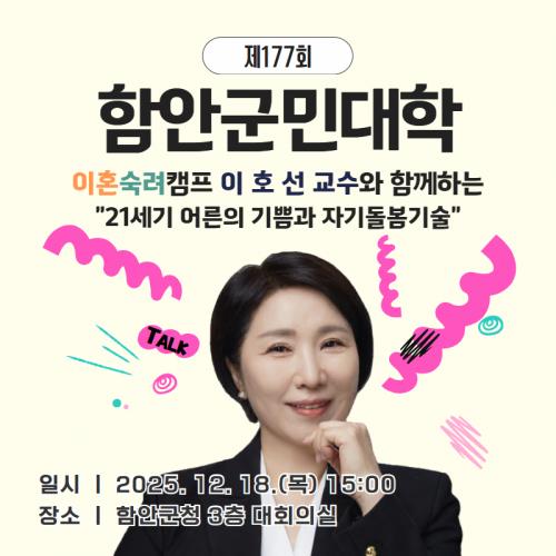 [½Åµ¿¾Æ¹æ¼Û °æ³²ÇÔ¾È=À̽ŵ¿±âÀÚ] ÇԾȱºÀº ¿À´Â 18ÀÏ ¿ÀÈÄ 3½Ã ÇԾȱºÃ» 3Ãþ ´ëȸÀǽǿ¡¼­ ±º¹ÎÀÇ Æò»ýÇнÀ ±âȸ È®´ë¿Í »îÀÇ Áú Çâ»óÀ» À§ÇØ 'Á¦177ȸ ±º¹Î´ëÇÐ'À» °³ÃÖÇÑ´Ù°í ¹àÇû´Ù. À̹ø ±º¹Î´ëÇÐÀº ÀÌÈ£¼± ±³¼ö°¡ ÃÊûµÅ '21¼¼±â ¾î¸¥ÀÇ ±â»Ý°ú Àڱ⠵¹º½ ±â¡¦