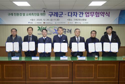 [½Åµ¿¾Æ¹æ¼Û ±¸·Ê=À±¼ºÁÖ ±âÀÚ] ±¸·Ê±ºÀº ģȯ°æ ³ó¾÷ÀÇ °¡Ä¡¸¦ È®»êÇÏ°í ½Ò ¼Òºñ ±â¹ÝÀ» °­È­Çϱâ À§ÇØ °ø°ø¡¤±ÝÀ¶¡¤³óÇù¡¤¹Î°£ÀÌ Âü¿©ÇÏ´Â ´ÙÀÚ°£ ¾÷¹«Çù¾àÀ» Áö³­ 12¿ù 26ÀÏ ±ºÃ» »óȲ½Ç¿¡¼­ ü°áÇß´Ù. À̳¯ Çù¾à½Ä¿¡´Â ±è¼øÈ£ ±¸·Ê±º¼ö¸¦ ºñ·ÔÇØ ¡ã±¸·Ê±ºÀÇȸ(ÀÇ¡¦