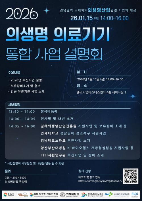 ±èÇØÀÇ»ý¸í¡¤»ê¾÷ÁøÈï¿ø, ¿À´Â 15ÀÏ ¡¸2026³â ÀÇ»ý¸í ÀÇ·á±â±â ÅëÇÕ »ç¾÷¼³¸íȸ¡¹°³ÃÖ