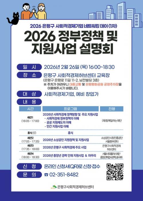 [½Åµ¿¾Æ¹æ¼Û ÀºÆò±¸=À̽ŵ¿±âÀÚ] ¼­¿ï ÀºÆò±¸´Â ¿À´Â 26ÀÏ ÀºÆò±¸ »çȸÀû°æÁ¦Çãºê¼¾ÅÍ¿¡¼­ ¡®2026 »çȸÀû°æÁ¦±â¾÷ ³×Æ®¿öÅ· µ¥ÀÌ¡¯¸¦ °³ÃÖÇÑ´Ù°í ¹àÇû´Ù. À̹ø Çà»ç´Â 2024³âºÎÅÍ ¿î¿µÇØ ¿Â »çȸÀû°æÁ¦±â¾÷ ³×Æ®¿öÅ· ÇÁ·Î±×·¥ÀÇ ¿ÃÇØ ù ÀÏÁ¤ÀÌ´Ù. °ü³» »çȸÀû°æÁ¦±â¡¦