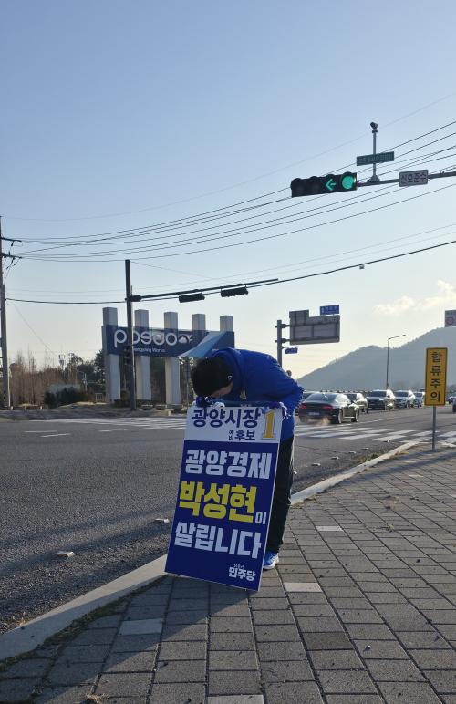 [½Åµ¿¾Æ¹æ¼Û Àü³²±¤¾ç=¹Ú±¤¿Á±âÀÚ] ±¤¾ç½ÃÀå ¼±°Å¿¡ Ã⸶ÇÑ ¹ÎÁÖ´ç ¹Ú¼ºÇö ¿¹ºñÈ帴 13ÀÏ ¿ÀÀü 6½Ã 30²² ±¤¾ç½Ã ±ÝÈ£µ¿ ±ÝÈ£´ë±³ ÀÏ´ë¿Í ¿©¼ö±¤¾çÇ׸¸°ø»ç Á¤¹® ¾Õ¿¡¼­ ¾ÆÄ§ Ãâ±Ù±æ¿¡ ³ª¼± ½Ã¹Îµé°ú Â÷·® ¿îÀüÀڵ鿡°Ô Àλ縦 Çϸç ÁöÁö¸¦ È£¼ÒÇϰí ÀÖ´Ù. ¹Ú Èĺ¸´Â¡¦