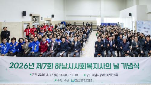 [½Åµ¿¾Æ¹æ¼Û Çϳ²½Ã=À̽ŵ¿±âÀÚ] Çϳ²½Ã»çȸº¹Áö»çÇùȸ´Â Áö³­ 17ÀÏ(È­) Çϳ²½ÃÀå¾ÖÀκ¹Áö°ü¿¡¼­ ¡¸Á¦7ȸ Çϳ²½Ã»çȸº¹Áö»çÀÇ ³¯ ±â³ä½Ä¡¹À» °³ÃÖÇß´Ù. À̳¯ Çà»ç¿¡¼­´Â ÀÌÇöÀç Çϳ²½ÃÀå, ±Ý±¤¿¬ Çϳ²½ÃÀÇȸ ÀÇÀå ¹× ½ÃÀÇ¿ø, ¹ÚÂù¼ö °æ±âµµ»çȸº¹Áö»çÇùȸÀåÀ» ºñ·ÔÇÑ¡¦