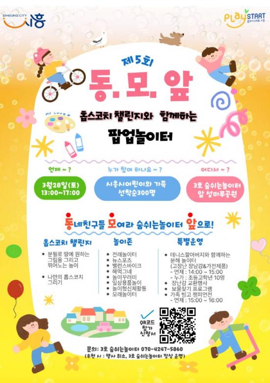 [½Åµ¿¾Æ¹æ¼Û ½ÃÈï½Ã=À̽ŵ¿±âÀÚ] ½ÃÈï½Ã´Â ¾Æµ¿ÀÇ °Ç°­ÇÑ ³îÀ̹®È­ ȯ°æÀ» Á¶¼ºÇϰí ÀÚÀ¯³îÀÌ¿¡ ´ëÇÑ ÀνÄÀ» È®»êÇϱâ À§ÇØ ¿À´Â 3¿ù 28ÀÏ ¿ÀÈÄ 1½ÃºÎÅÍ 5½Ã±îÁö ¡®3È£ ¼û½¬´Â³îÀÌÅÍ¡¯¿Í ¡®¼º¸¶·ç°ø¿ø¡¯ ÀÏ´ë¿¡¼­ ¡®ÆË¾÷³îÀÌÅÍ µ¿¡¤¸ð¡¤¾Õ 5ꡝÀ» °³ÃÖÇÑ´Ù. ¡®µ¿¡¤¸ð¡¦