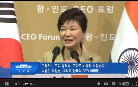 ¹Ú±ÙÇý ´ëÅë·ÉÀÌ Çѱ¹À» ±¹ºó¹æ¹® ÁßÀÎ ¸ðµð Àεµ ÃѸ®¿Í ÇÔ²² ÇÑ-Àεµ CEO Æ÷·³ Ãâ¹ü½Ä¿¡ Âü¼®Çß½À´Ï´Ù.