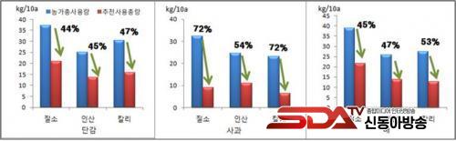 °æ»ó³²µµ³ó¾÷±â¼ú¿ø(¿øÀå ÀÌ»ó´ë)Àº ³óÃÌÁøÈïû°ú ¡®2019³â ³ó¾÷ȯ°æ º¯µ¿ Æò°¡ »ç¾÷¡¯ÀÇ ÀÏȯÀ¸·Î °æ³²Áö¿ª ½Ä·®ÀÛ¹° Àç¹è³ó°¡ 100°³¼Ò(º­ 40, Äá 30, º¸¸® 30)¸¦ ´ë»óÀ¸·Î ºñ·á»ç¿ë ½ÇÅÂÁ¶»ç¸¦ ¼öÇàÇÑ´Ù°í ¹àÇû´Ù. ³óÀÛ¹°ÀÇ Ç°Áú°ú ¾ÈÁ¤»ý»êÀ» À§Çؼ­´Â Åä¾çÀÌ ¾Ë¸ÂÀº ¾çºÐ»óŸ¦ À¯ÁöÇØ¾ß ÇÑ´Ù. Åä¾ç ¾çºÐÀÌ ºÎÁ·Çϸé ÀÛ¹° »ýÀ°ÀÌ ºÒ·®ÇÏ¿© ¼ö·®ÀÌ °¨¼ÒµÇ´Â µîÀÇ ¹®Á¦°¡ ¹ß»ýÇϰí, ¾çºÐÀÌ °ú´ÙÇÏ¸é ¿°·ùÁýÀû°ú ¾çºÐºÒ±ÕÇü, ȯ°æ¿À¿° µîÀ» ÀÏÀ¸Å²´Ù. À̸¦ ¿¹¹æÇϱâ À§Çؼ­´Â ÀÛ¹°º° ÀûÁ¤·®ÀÇ ½Ãºñ°¡ ÇÊ¿äÇÏÁö¸¸ ½ÇÁ¦ ³ó°¡¿¡¼­ »ç¿ëÇϰí ÀÖ´Â ºñ·á·®¿¡ ´ëÇØ¼­´Â Åë°èÀÚ·á°¡ ºÎÁ·ÇÑ ½ÇÁ¤ÀÌ´Ù. °æ³²³ó¾÷±â¼ú¿øÀº Áö³­ 2017³âµµºÎÅÍ °æ³²Áö¿ª ³ó°¡ÀÇ ºñ·á»ç¿ë ½ÇŸ¦ Á¶»çÇϰí ÀÖÀ¸¸ç, À۳⿡´Â °ú¼ö¿ø 100°³¼Ò (´Ü°¨ 50, »ç°ú 25, ¹è 25)ÀÇ Åä¾çÀ» äÃëÇÏ¿© Åä¾ç °ËÁ¤À» ÅëÇÑ Ãßõ½Ãºñ·®°ú ½ÇÁ¦ °ú¿ø¿¡ ÅõÀÔÇÑ ºñ·á·®ÀÇ Â÷À̸¦ ºñ±³ÇÏ¿´´Ù. ±× °á°ú ´Ü°¨³ó°¡´Â 10a´ç Áú¼Ò 16.3kg, Àλê 11.3kg, Ä®¸® 14.4kg, »ç°ú³ó°¡´Â Áú¼Ò 23.2kg, Àλê 13.4kg, Ä®¸® 16.8kg, ¹è³ó°¡´Â Áú¼Ò 17.4kg, Àλê 12.0kg, Ä®¸® 14.6kgÀÌ °úÀ× ½ÃºñµÇ°í ÀÖ´Â °ÍÀ¸·Î ³ªÅ¸³µ´Ù. µû¶ó¼­ ºñ·á¸¦ ÁÖ±â Àü¿¡ Åä¾çÀ» äÃëÇÏ¿© °¡±î¿î ½Ã¡¤±º ³ó¾÷±â¼ú¼¾ÅÍ¿¡¼­ Åä¾ç °ËÁ¤À» ÅëÇØ ºñ·á»ç¿ë 󹿼­¸¦ ¹ß±Þ¹Þ¾Æ Ãßõ½Ãºñ·® ¸¸Å­¸¸ ºñ·á¸¦ »ç¿ëÇÒ °ÍÀ» ±ÇÀåÇÑ´Ù. °æ³²³ó¾÷±â¼ú¿ø ȯ°æ³ó¾÷¿¬±¸°ú Á¶ÇöÁö ¿¬±¸»ç´Â ¡°°æ³² ÁÖ¿ä °ú¼ö¿ø¿¡ ºñ·á°¡ °úÀ× ÅõÀԵǰí ÀÖÁö¸¸ Åä¾ç °ËÁ¤ °á°ú¿¡ µû¶ó ºñ·á¸¦ ½Ã¿ëÇÒ °æ¿ì Áú¼Ò´Â 44~72%, ÀλêÀº 45~55%, Ä®¸®´Â 48~72%±îÁö ºñ·á¸¦ Àý°¨ÇÒ ¼ö ÀÖÀ¸¹Ç·Î, Åä¾çÀÇ ºÒÇÊ¿äÇÑ ¾çºÐÅõÀÔÀ» ÃÖ¼ÒÈ­½Ã۰í ÀûÁ¤ÇÏ°Ô °ü¸®ÇÒ ¼ö ÀÖ´Ù.¡±°í ¼³¸íÇß´Ù.
