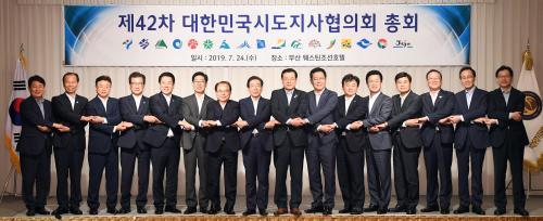24ÀÏ ¿ÀÈÄ ºÎ»ê ÇØ¿î´ë±¸ ¿þ½ºÆ¾Á¶¼±È£ÅÚ ¿À۵åȦ¿¡¼­ ¿­¸° Á¦42Â÷ ´ëÇѹα¹½ÃµµÁö»çÇùÀÇȸ ÃÑȸ¿¡¼­ Àü±¹ ±¤¿ªÀÚÄ¡´ÜüÀåµéÀÌ ÆÄÀÌÆÃÀ» ¿ÜÄ¡°í ÀÖ´Ù. ÁÂÃøºÎÅÍ ±Ç¿µÁø ´ë±¸±¤¿ª½ÃÀå, ÃÖ¹®¼ø °­¿øµµÁö»ç, ÀÌö¿ì °æºÏµµÁö»ç, À̽ÃÁ¾ ÃæºÏµµÁö»ç, ±è¿µ·Ï Àü³²µµÁö»ç, ¾ç½ÂÁ¶ Ãæ³²µµÁö»ç, ¿À°Çµ· ºÎ»ê±¤¿ª½ÃÀå, ¹Ú¿ø¼ø ¼­¿ïƯº°½ÃÀå, À̿뼷 ±¤ÁÖ±¤¿ª½ÃÀå, ¹Ú³²Ãá ÀÎõ±¤¿ª½ÃÀå, ¿øÈñ·æ Á¦ÁÖµµÁö»ç, ÇãÅÂÁ¤ ´ëÀü±¤¿ª½ÃÀå, ÀÌÃáÈñ ¼¼Á¾±¤¿ª½ÃÀå, ¼Ûöȣ ¿ï»ê±¤¿ª½ÃÀå, ¼ÛÇÏÁø ÀüºÏµµÁö»ç, ±è°æ¼ö °æ³²µµÁö»ç ¼ø./´ëÇѹα¹½ÃµµÁö»çÇùÀÇȸ Á¦°ø