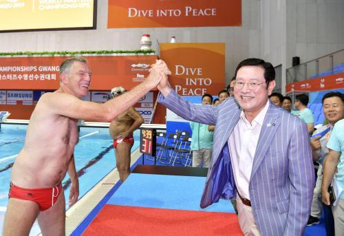À̿뼷 ±¤ÁÖ¼¼°è¸¶½ºÅÍÁî¼ö¿µ¼±¼ö±Ç´ëȸ Á¶Á÷À§¿øÀå °â ±¤ÁÖ±¤¿ª½ÃÀåÀÌ 2019±¤ÁÖ¼¼°è¸¶½ºÅÍÁî¼ö¿µ¼±¼ö±Ç´ëȸ °³¸·À» ÇÏ·ç ¾ÕµÐ 4ÀÏ ¿ÀÈÄ ±¤»ê±¸ ³²ºÎ´ë ½Ã¸³±¹Á¦¼ö¿µÀåÀ» ¹æ¹®ÇØ ´ëȸ Áغñ»óȲÀ» Á¡°ËÇϸç ÇØ¿Ü ¼ö±¸ÃâÀü ¼±¼ö¿Í ÇÏÀÌÆÄÀ̺긦 Çϰí ÀÖ´Ù./Á¶Á÷À§¿øÈ¸ Á¦°ø