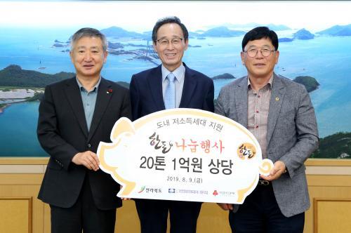 9ÀÏ ÀüºÏµµÃ» Á¢°ß½Ç¿¡¼­ ¼ÛÇÏÁø µµÁö»ç¸¦ ºñ·ÔÇÑ ±èµ¿¼ö ÀüºÏ»çȸº¹Áö°øµ¿¸ð±ÝȸÀå, ÀÌ¿õ·Ä (»ç)´ëÇÑÇѵ·Çùȸ ÀüºÏÇùÀÇȸÀå, ÀüºÏÇѵ·Çùȸ °ü°èÀÚ Âü¼®ÇØ µµ³» Àú¼Òµæ ¼¼´ëÁö¿øÀ» À§ÇÑ µÅÁö°í±â 20Åæ(1¾ï¿ø »ó´ç) ÈÄ¿ø¹°Ç° Àü´Þ½Ä ±â³äÃÔ¿µÀ» Çϰí ÀÖ´Ù. (»çÁøÁÂÃøºÎÅÍ ±èµ¿¼ö ÀüºÏ»çȸº¹Áö°øµ¿¸ð±ÝȸÀå, ¼ÛÇÏÁøµµÁö»ç, ÀÌ¿õ·Ä (»ç)´ëÇÑÇѵ·Çùȸ ÀüºÏÇùÀÇȸÀå ¼ø).