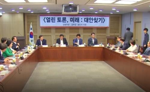 Ȳ ´ëÇ¥´Â 27ÀÏ ¡®¾ß±ÇÅëÇÕ°ú Çõ½ÅÀÇ ºñÀü¡¯À» ÁÖÁ¦·Î ´Ù½Ã ¿¸®´Â À̹ø Åä·Ðȸ¿¡ Âü¼®ÇØ ±¸Ã¼ÀûÀÎ ÅëÇÕ·ÐÀ» ¹àÈ÷´Â ¹æ¾ÈÀ» ±àÁ¤ÀûÀ¸·Î °ËÅäÇϰí ÀÖ´Ù.ÇÑÆí ±è¹«¼º ÀÇ¿øÀÌ ÁÖÃÖÇÑ Åä·Ðȸ¿¡¼± ¹Ú±ÙÇý Àü ´ëÅë·É źÇÙÀ» µÎ°í ±è ÀÇ¿ø°ú ±è¹®¼ö Àü °æ±âÁö»ç°¡ ¼³ÀüÀ» ¹ú¿© º¸¼ö´ëÅëÇÕÀÇ Çè·Î¸¦ ¿¹°íÇß´Ù.