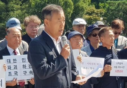 Á¤±³¸ð´Â ¼±¾ð¼¿¡¼ "¿Â°® ºñ¸® ÀÇȤÀ» ¹Þ°í ÀÖ°í Á¶±¹ Àå°üÀÇ ºÎÀÎÀº ÀÚ³à ´ëÇпø ÀÔÇÐÀ» À§ÇÑ ¹®¼ À§Á¶ ÇøÀÇ·Î ±â¼Ò±îÁö µÆÀ½¿¡µµ ¹® ´ëÅë·ÉÀº Á¶±¹ ±³¼ö¸¦ ¹ý¹«ºÎ Àå°ü¿¡ ÀÓ¸íÇØ »çȸ Á¤ÀÇ¿Í À±¸®¸¦ ¹«³Ê¶ß·È´Ù"°í ÁÖÀåÇß´Ù.