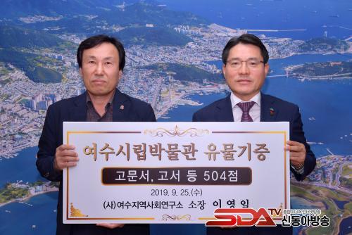 Áö³ 25ÀÏ¿¡´Â (»ç)¿©¼öÁö¿ª»çȸ¿¬±¸¼Ò(¼ÒÀå ÀÌ¿µÀÏ)°¡ °í¼, °í¹®¼, Åä±â µî À¯¹° 504Á¡À» ¿©¼ö½Ã¿¡ Àü´ÞÇϸç À¯¹°±âÁõ 1È£ ´Üü°¡ µÆ´Ù.