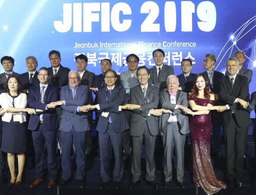 Àü¶óºÏµµ¿Í ±¹¹Î¿¬±Ý°ø´ÜÀÌ °øµ¿ ÁÖÃÖÇÑ 2019 ÀüºÏ±¹Á¦±ÝÀ¶ÄÁÆÛ·±½º°¡ 26ÀÏ ÀüÁÖ ±×·£µåÈú½ºÅÏ È£ÅÚ¿¡¼ ¿¸° °¡¿îµ¥ ¼ÛÇÏÁø µµÁö»ç¿Í ±è¼ºÁÖ ±¹¹Î¿¬±Ý°ø´ÜÀÌ»çÀå, ¼¼°è3´ë ÅõÀÚÀÚ·Î ¼Õ²ÅÈ÷´Â 'Áü ·ÎÀú½º' ºñ·£µå ÀÎÅÍ·¹½ºÆ® ȸÀå, 'À̰¥ ¿¡¸¦¸®È÷' ¿äÁ±×·ì ȸÀå ¹× ¼¼°è ±ÝÀ¶¸®´õµéÀÌ °³È¸½ÄÀ» °®°í ±â³äÃÔ¿µÀ» Çϰí ÀÖ´Ù. »çÁø¿ÞÂÊ 3¹øÂ° ºÎÅÍ À̰¥ ¿¡¸¦¸®È÷ ȸÀå, ±è¼ºÁÖ ÀÌ»çÀå, ¼ÛÇÏÁø µµÁö»ç, Áü ·ÎÀú½º ȸÀå.