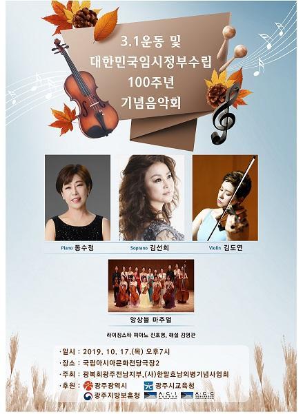 ±¤º¹È¸ ±¤ÁÖ¡¤Àü³²ÁöºÎ¿Í »ç´Ü¹ýÀÎ ÇѸ»È£³²ÀǺ´±â³ä»ç¾÷ȸ(ÀÌ»çÀå ±è°©Á¦) ÁÖÃÖ·Î ¿À´Â 17ÀÏ ¿ÀÈÄ 7½Ã ±¤ÁÖ ¾Æ½Ã¾Æ¹®ÈÀü´ç¿¡¼ ¿¸®´Â 3.1¿îµ¿ ¹× ´ëÇѹα¹ÀÓ½ÃÁ¤ºÎ¼ö¸³100Áֳ⠱â³äÀ½¾Çȸ°¡ ¿¸°´Ù°í 15ÀÏ ¹àÇû´Ù.