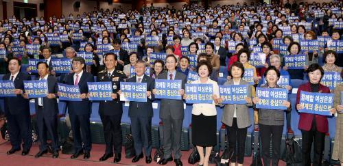 [½Åµ¿¾Æ¹æ¼Û °­¼º´ë ±âÀÚ] 7ÀÏ ÀüºÏµµÃ» °ø¿¬Àå¿¡¼­ ¿­¸° ¡®2019 Á¦21ȸ ÀüºÏ¿©¼º´ëȸ¡¯¿¡ ¼ÛÇÏÁø µµÁö»ç, ¼Û¼ºÈ¯ µµÀÇȸ ÀÇÀåÀ» ºñ·ÔÇØ ÀÓ¾ç¼ø ÀüºÏ¿©¼º´ÜüÇùÀÇȸÀå ¹× µµ³» 20°³ ¿©¼º´Üü¿Í 14°³ ½Ã±º ¿©¼º´Üü ȸ¿ø µî Âü¼®ÀÚµéÀÌ 'ÇÔ²²ÇÒ ¿©¼º¿îµ¿ ¼¼°èÀÇ Áß½ÉÀ¸·Î'À̶ó°í ¿ÜÄ¡´Â ÆÛÆ÷¸Õ½º¸¦ Çϰí ÀÖ´Ù.
