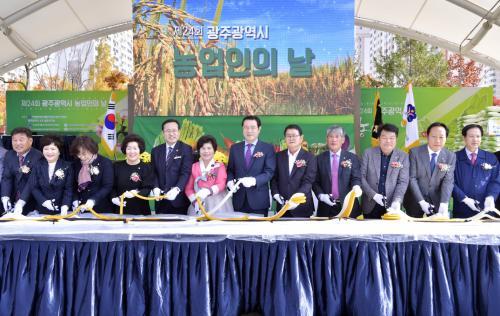 À̿뼷 ±¤ÁÖ±¤¿ª½ÃÀåÀÌ 11ÀÏ ¿ÀÀü ¼±¸ »ó¹«½Ã¹Î°ø¿ø¿¡¼ ¿¸° 'Á¦24ȸ ³ó¾÷ÀÎÀÇ ³¯' Çà»ç¿¡ Âü¼®ÇØ ±èµ¿Âù ±¤ÁÖ½ÃÀÇȸ ÀÇÀå, ±èÀϼö ³óÇùÁß¾Óȸ ±¤ÁÖÁö¿ªº»ºÎÀå, º¯¿Á·Ê Çѱ¹»ýȰ°³¼±±¤Áֽÿ¬ÇÕȸÀå µî ³»ºóµé°ú °¡·¡¶± Ä¿ÆÃ½ÄÀ» Çϰí ÀÖ´Ù.