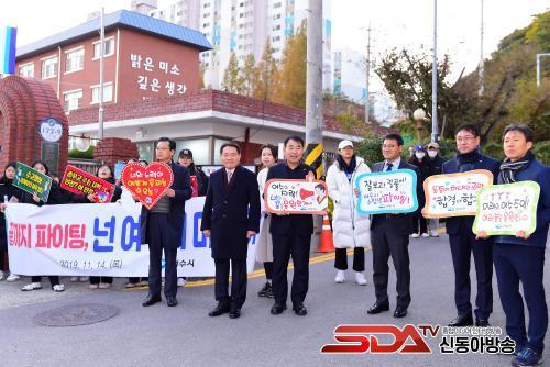 À̳¯ ±Ç ½ÃÀåÀº ½ÃÇèÀåÀ¸·Î ÇâÇÏ´Â ÇлýµéÀÇ ¼ÕÀ» Àâ°í ¼ö´É ´ë¹ÚÀ» ±â¿øÇß´Ù.