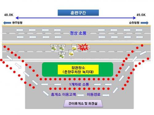 µµ·Î°ø»ç ±¸·ÊÁö»ç °ü°èÀÚ´Â ¡°ÈÆ·Ã ´çÀÏ ¿ÀÀü 8½ÃºÎÅÍ ¿ÀÈÄ 5½Ã±îÁö ÃáÇâÁÖÂ÷Àå ¼øÃµ¹æÇâ ÀüÈÄ ±¸°£ÀÌ Àü¸é ±³ÅëÅëÁ¦°¡ µÉ ¿¹Á¤ÀÌ´Ù¡±¸ç ¡°°í¼Óµµ·Î ÀÌ¿ëÂ÷·®Àº ÃáÇâÁÖÂ÷Àå ³»·Î ¿ìÈ¸ÇØ¾ß ÇϹǷΠÀÌ ±¸°£À» Áö³¯ °æ¿ì, µµ·ÎÀü±¤Ç¥Áö ¹× ±³Åë¾ÈÀü½Ã¼³¿¡ µû¶ó ÁÖÀÇ¿îÀüÀÌ ¿ä±¸µÈ´Ù¡±°í ¸»Çß´Ù.