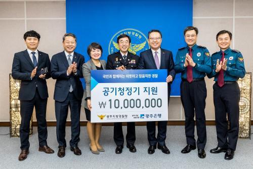 À̹ø À§¹®Çà»ç´Â ¿¬¸»À» ¸Â¾Æ Áö¿ª Ä¡¾È°ú ¹Î»ý¾ÈÁ¤À» À§ÇØ Çå½ÅÇÏ´Â Àǹ«°æÂû ´ë¿øÀ» °Ý·ÁÇϱâ À§ÇØ ¸¶·ÃÇÑ °ÍÀ¸·Î ¼ÛÁ¾¿í ±¤ÁÖÀºÇàÀå°ú ÀåÇÏ¿¬ ±¤ÁÖ°æÂûûÀåÀÌ Âü¼®ÇÑ °¡¿îµ¥ Àǹ«°æÂû ´ë¿øÀÇ º¹ÁöÇâ»óÀ» À§ÇÑ 1000¸¸¿ø »ó´çÀÇ °ø±âûÁ¤±â¸¦ À§¹®Ç°À¸·Î Àü´ÞÇß´Ù.