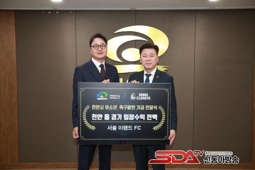 Çù¾à¿¡ µû¶ó ¼¿ïÀÌ·£µåFC´Â õ¾ÈÁ¾ÇտÀå¿¡¼ 10°æ±â¸¦ °³ÃÖÇϰí ÀÌ¿¡ ´ëÇÑ ÀÔÀå·á ¼öÀÔ±Ý(1999¸¸4,000¿ø) Àü¾×À» À¯¼Ò³â Ã౸ ¹ßÀü ±â±ÝÀ¸·Î Àü´ÞÇÏ°Ô µÆ´Ù. õ¾È½Ã´Â ¼¿ïÀÌ·£µåFC¿¡ ÀÎÇÁ¶ó´Â ¹°·Ð Á¦µµÀûÀ¸·Î Áö¿øÇß´Ù.