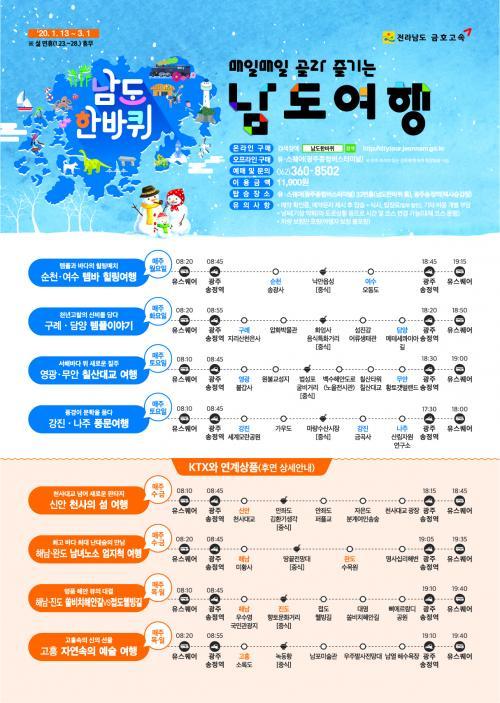 ¿ÃÇØ ¿îÇà 7³âÂ÷ÀÎ ³²µµÇѹÙÄû´Â Áö³ÇØ 1~2¿ù °Ü¿ï»óǰÀ» óÀ½ ½Ã¹ü ¿î¿µÇß´Ù. ¿©Çà ºñ¼ö±âÀÎ µ¿Àý±âÀÓ¿¡µµ 12°³ ÄÚ½º¿¡ 1õ38¸íÀÌ ÀÌ¿ë, 45Àν ¹ö½º 1´ë´ç Æò±Õ 43¸íÀÌ Å¾½ÂÇÏ¸ç ¼ºÈ²À» ÀÌ·ð´Ù.