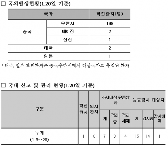 È®ÁøÈ¯ÀÚ´Â Áß±¹ ±¹ÀûÀÇ 35¼¼ ¿©¼º(Áß±¹ ¿ìÇѽà °ÅÁÖ)À¸·Î ÀÔ±¹ ÇÏ·çÀüÀÎ 1¿ù 18ÀÏ ¹ßº´ÇÏ¿© ¹ß¿, ¿ÀÇÑ, ±ÙÀ°Åë µî Áõ»óÀÌ ÀÖ¾î °°Àº ³¯ Áß±¹ ¿ìÇѽà º´¿ø¿¡¼ Áø·á¸¦ ¹Þ°í °¨±âó¹æÀ» ¹Þ¾Ò°í, ¿ìÇѽà ÀüÅë½ÃÀå(ȳ ÇØ»ê¹°½ÃÀå Æ÷ÇÔ) ¹æ¹®·ÂÀ̳ª È®ÁøÈ¯ÀÚ ¹× ¾ß»ýµ¿¹° Á¢ÃË·ÂÀº ¾ø´Ù°í ´äº¯ÇÏ¿´À¸¸ç, Áß¾Ó¿ªÇÐÁ¶»ç°üÀÌ ½ÉÃþ¿ªÇÐÁ¶»ç¸¦ ÁøÇàÁßÀÌ´Ù.