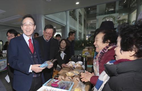 [½Åµ¿¾Æ¹æ¼Û=°­¼º´ë ±âÀÚ] 21ÀÏ Àü¶óºÏµµÃ» ·Îºñ¿¡¼­ ¿­¸° ¼³¸ÂÀÌ ¾î¸£½Å, Àå¾ÖÀÎ, ÀÚȰ »ý»êǰ ÆÇ¸Å Çà»ç¿¡ ¼ÛÇÏÁø µµÁö»ç¸¦ ºñ·ÔÇÑ °ø¹«¿øµéÀÌ »óǰÀ» ±¸ÀÔÇϰí ÀÖ´Ù.