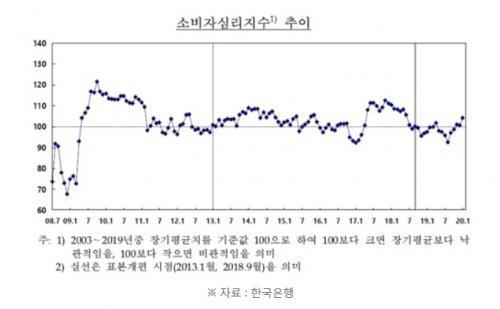 ÀÌ¿¡ ÀÇÇϸé ÀÌ´Þ ¼ÒºñÀڽɸ®Áö¼ö´Â ÇÑ ´Þ Àüº¸´Ù 3.7Æ÷ÀÎÆ® ¿À¸¥ 104.2¸¦ ³ªÅ¸³Â´Ù. ÀÌ Áö¼ö°¡ 100º¸´Ù ³ôÀ¸¸é ¼ÒºñÀÚµéÀÇ ½É¸®°¡ Àå±âÆò±Õ(2003¡2019³â)º¸´Ù ³«°üÀûÀÌ´Ù.