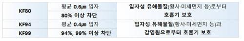 º¸°Ç¿ë ¸¶½ºÅ©´Â ÀÔÀÚÂ÷´Ü ¼º´É¿¡ µû¶ó Á¦Ç°À» ±¸ºÐÇϰí ÀÖÀ¸¸ç, À̹ø ½ÅÁ¾ Äڷγª¹ÙÀÌ·¯½º¿Í °°Àº °¨¿° ¿¹¹æÀ» À§Çؼ´Â ¡®KF94¡¯, ¡®KF99¡¯ µî±ÞÀÇ ¸¶½ºÅ©¸¦ »ç¿ëÇÏ´Â °ÍÀÌ ¹Ù¶÷Á÷Çϸç, ´Ù¸¸ ¸¶½ºÅ© Âø¿ëÀ¸·Î È£ÈíÀÌ ºÒÆíÇÑ °æ¿ì »ç¿ëÀ» ÁßÁöÇϰí, ÀÇ»ç µî Àü¹®°¡¿Í »óÀÇÇØ¾ß ÇÑ´Ù.