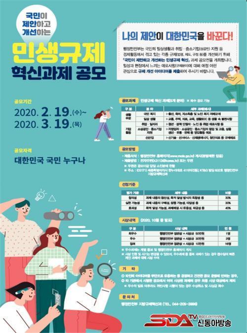 À̹ø °ø¸ð´Â ½Ã¹ÎµéÀÌ ÀÏ»ó»ýȰ°ú °æÁ¦È°µ¿¿¡¼ °Þ°í ÀÖ´Â °¢Á¾ ±ÔÁ¦¸¦ ¹ß±¼․ÇØ¼ÒÇϱâ À§Çؼ¸ç, ¡®±¹¹ÎÀÌ Á¦¾ÈÇÏ°í °³¼±ÇÏ´Â ¹Î»ý±ÔÁ¦ Çõ½Å¡¯À» ÁÖÁ¦·Î ±¹¹Î º¹Áö, ÀÏ»ó »ýȰ, Ãë¾÷․ÀÏÀÚ¸®, ¼Ò»ó°øÀÎ․Áß¼Ò±â¾÷ Áö¿ø, ½Å»ê¾÷ µî 5°³ ºÐ¾ß·Î ÁøÇàµÈ´Ù.