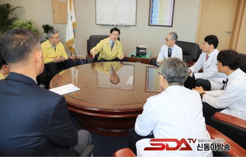±è Áö»ç¿Í À± ¿øÀå µî ÀÏÇàÀº À½¾Ðº´µ¿°ú ¼±º°Áø·á¼Ò¸¦ µÑ·¯º¸¸ç ÇöÀåÀ» Á¡°ËÇÏ°í ±Ù¹«ÀÚµéÀ» °Ý·ÁÇß´Ù. ±¹°¡ÁöÁ¤ ÀÔ¿øÄ¡·áº´»ó±â°üÀÎ °æ»ó´ëº´¿øÀº ÇöÀç 24½Ã°£ ¼±º°Áø·á¼Ò¸¦ ¿î¿µ ÁßÀ̸ç À½¾Ðº´µ¿ 4°³ º´»óÀÌ ¸¶·ÃµÅ ÀÖ´Ù.