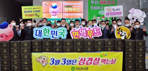 ³óÇù Àü³²Áö¿ªº»ºÎ(º»ºÎÀå ±è¼®±â)´Â 28ÀÏ Áö¿ªº»ºÎ 1Ãþ ·Îºñ¿¡¼ µÅÁö°í±â ¼ÒºñÈ®´ë¸¦ À§ÇØ ¡®Àü³²³óÇù ÀÓÁ÷¿ø ¿ì¸® µÅÁö°í±â ´õ ¸Ô±â ¿îµ¿¡¯À» Àü°³Çß´Ù°í ¹àÇû´Ù.